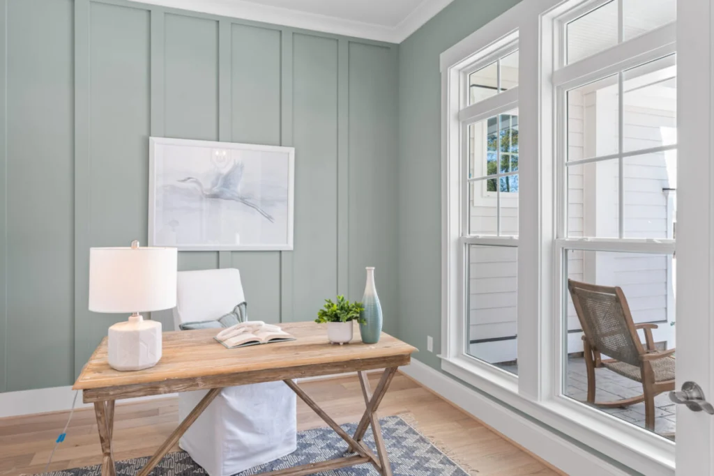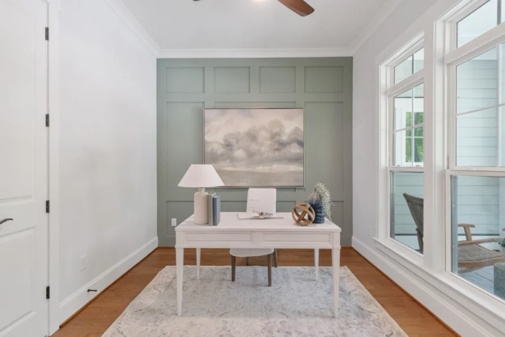 Step into the heart of the home, the great room, boasting an impressive 17’8″ x 19’2″ space with ample room for family time and social gatherings. The adjoining kitchen is a culinary dream with a practical layout, modern appliances, and a walk-in pantry, all opening to a cozy dining area perfect for savory meals and engaging conversations. An office space, conveniently located off the foyer, provides a quiet corner for work or study.