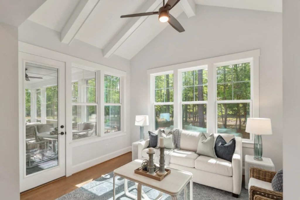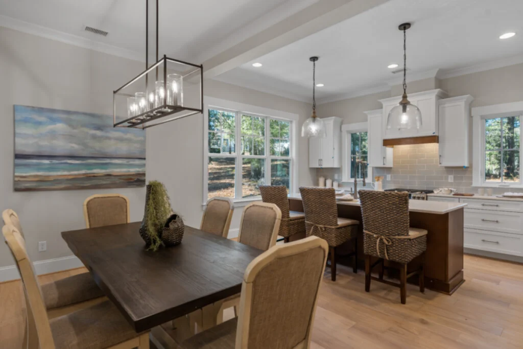 The Avery Creek is a resplendent home that encompasses a total of 2,727 square feet, with a main floor that spreads across 2,062 square feet, tailored for those who appreciate the blend of luxury and practicality. This home features a spacious master suite on the first floor, an office for productivity, and a great room for gatherings, while the second level offers an expansive bonus room and an additional bedroom, complete with a screened porch to enjoy the outdoors in comfort.
