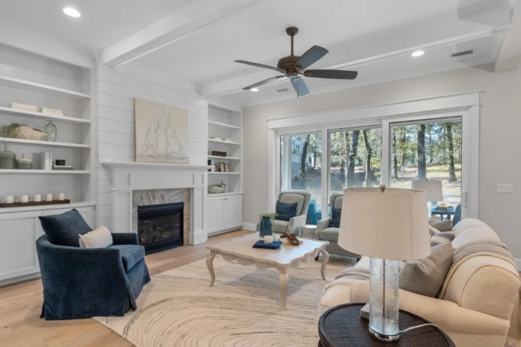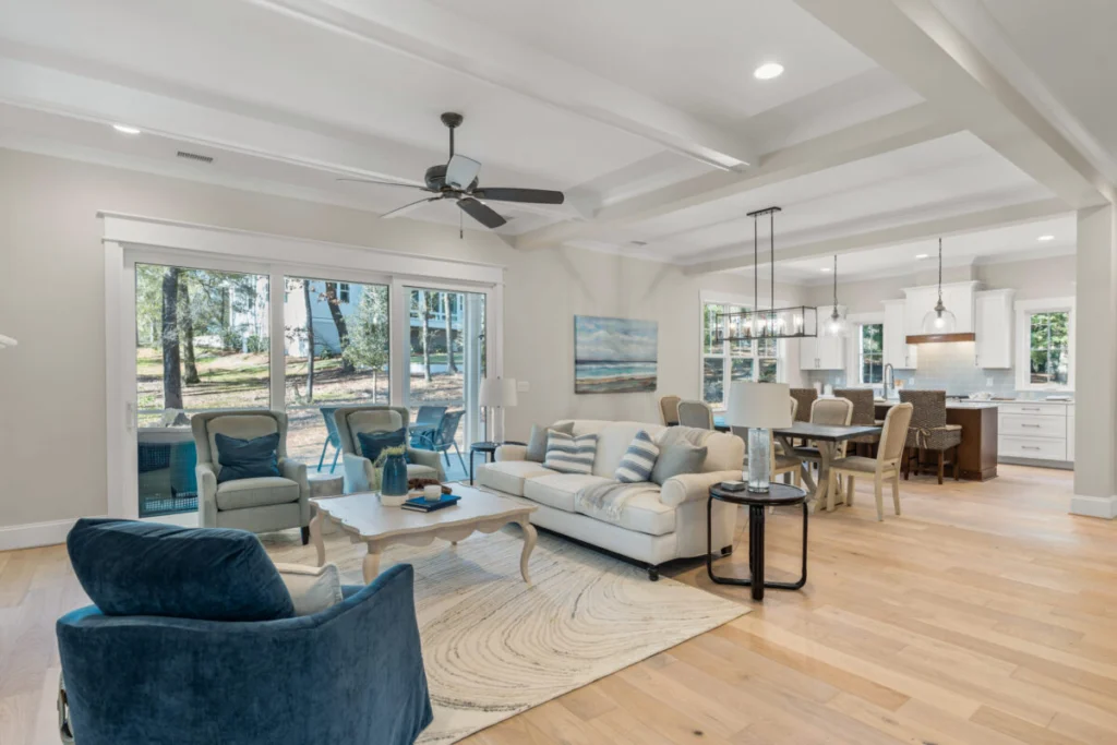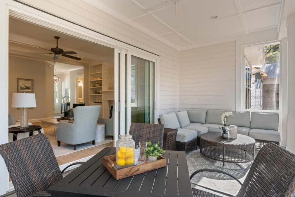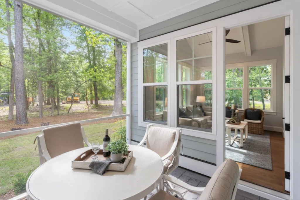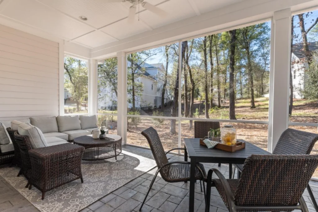 Outdoor living is elevated to new heights with a screened porch that invites you to relax and enjoy the tranquility of nature without stepping away from the comfort of your home. The first floor also offers an additional bedroom, well-appointed for guests or family members, ensuring comfort and privacy.