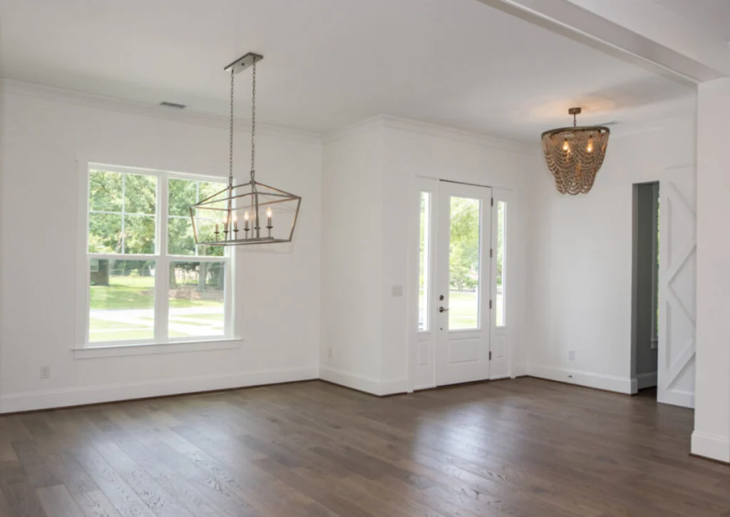 As you explore further, the living room unfolds before you, an expansive area of 19’7″ x 19’4″ with wood flooring and crown molding, perfect for both grand entertaining and serene relaxation. The kitchen, a chef’s dream, is equipped with state-of-the-art appliances and opens into a cozy nook, making it the heart of the home. The formal dining room promises to host your most cherished gatherings with grace and style.