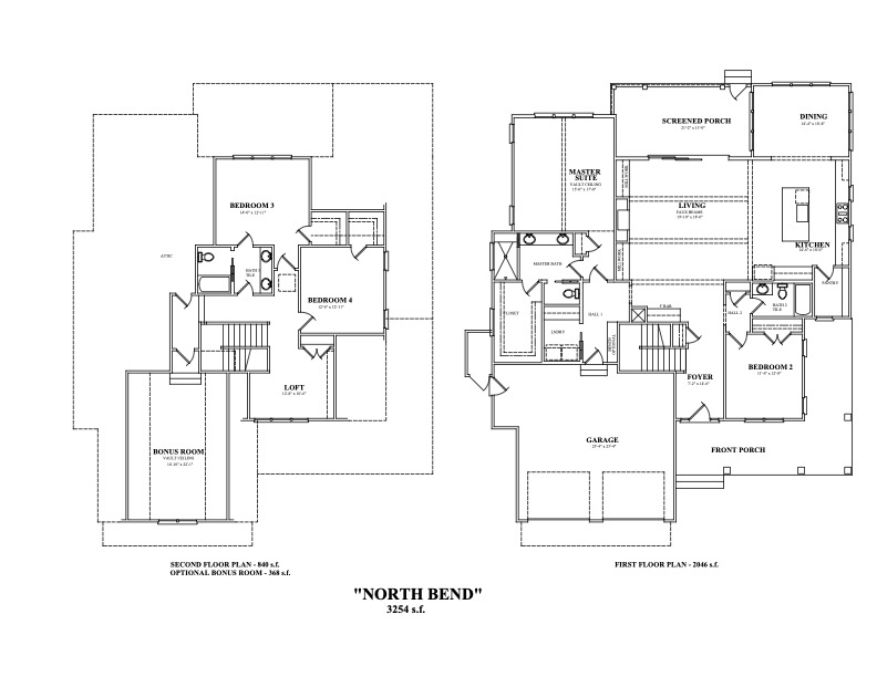 The North Bend is a 3,254-square-foot home available in River Bluffs, East Wynd, or on your own lot. It features a main-level primary suite, open living spaces with vaulted ceilings, a screened porch, and upstairs bedrooms with a loft and optional bonus room for added flexibility.